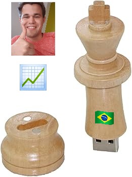 Pen Drive de 16GB (madeira com imã), contendo mais de 50 horas de aulas com GMs e MIs.
